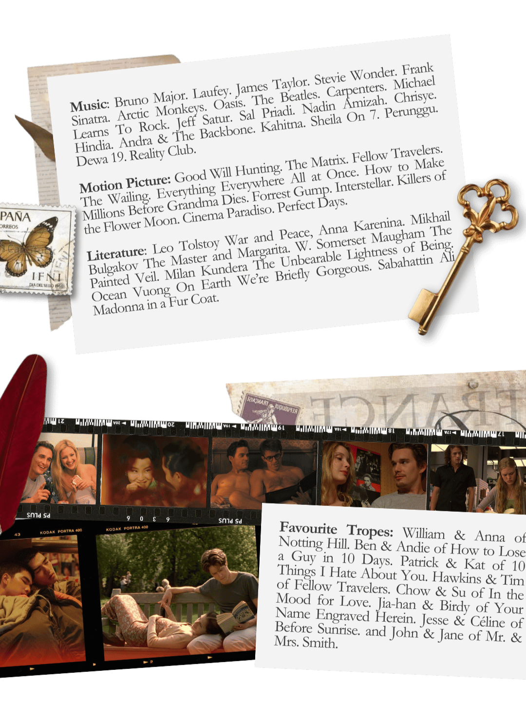 KEYWORDS: Library. Literature. Tea. Cuisine. Shared Meals. Moss Green. Autumn. Flower Language. Nature. Domestic. Low Maintenance. Quality Time at Night. Highlighting Details. Media Re-enacting. Established Relationship.TRIGGERS & NO-GOs: Gore. Body Horror. Jumpscare. Self-Harm. Abuse. Personality Forcement. Queerphobia. Racism. Zionism. Incest. Toxic Relationship. Passive-Aggressive. Off-limit Demands & Tantrums.